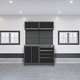 Garasjeinnredningen leveres i ulike moduler. Skuffene er låsbare og har skinner med kulelagre, og kan åpnes 100%. Vektbelastningen pr. skuff er på opptil 30 kg. Alle overskap, høyskap og underskap/skuffer kommer ferdig montert.