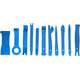 BRILLIANT TOOLS pyntelist-kile-settet BT511065 er et praktisk hjelpemiddel ved demontering av pyntelister, gummitetninger, dørpanel, brytere osv. Gjennom de forskjellige formene til de 11 kilene kan den også brukes på trange steder. Alle verktøyene er laget av glassfiberarmet plast. Dette sørger for stabilitet og fleksibilitet.